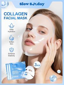 SlowSunday Collagen & Hyaluronic Acid Facial Mask 3pcs, Korean Collagen Mask, Jelly Collagen Face Mask, Deep Moisturizing, Improve Elasticity, Smooth Skin, Back To School, For Fall/Autumn, K Beauty, For Christmas's Day Holidays, Christmas Party, Christmas Gift