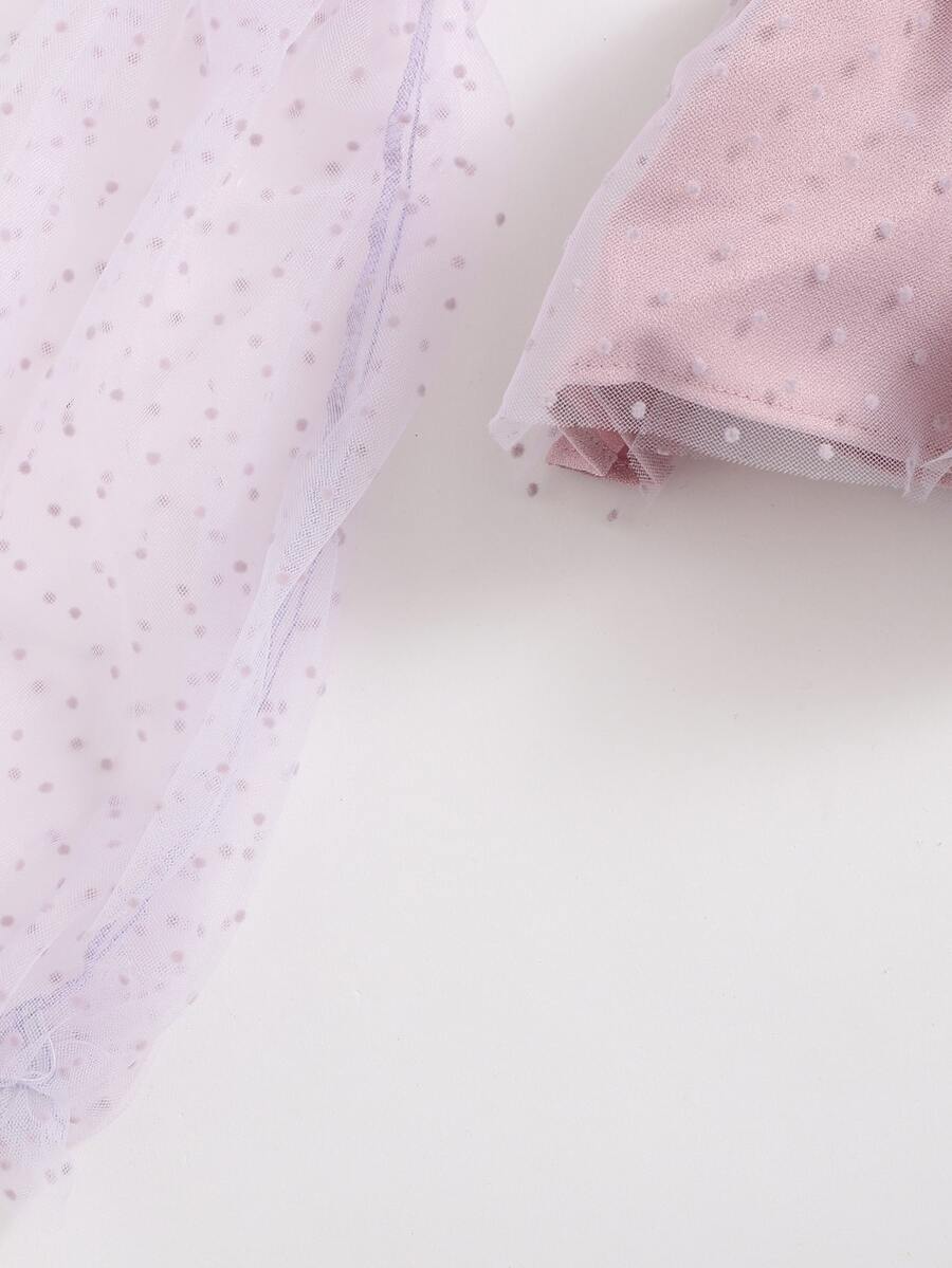 Smocked Off-the-Shoulder Polka Dot Mesh Sleeve Top