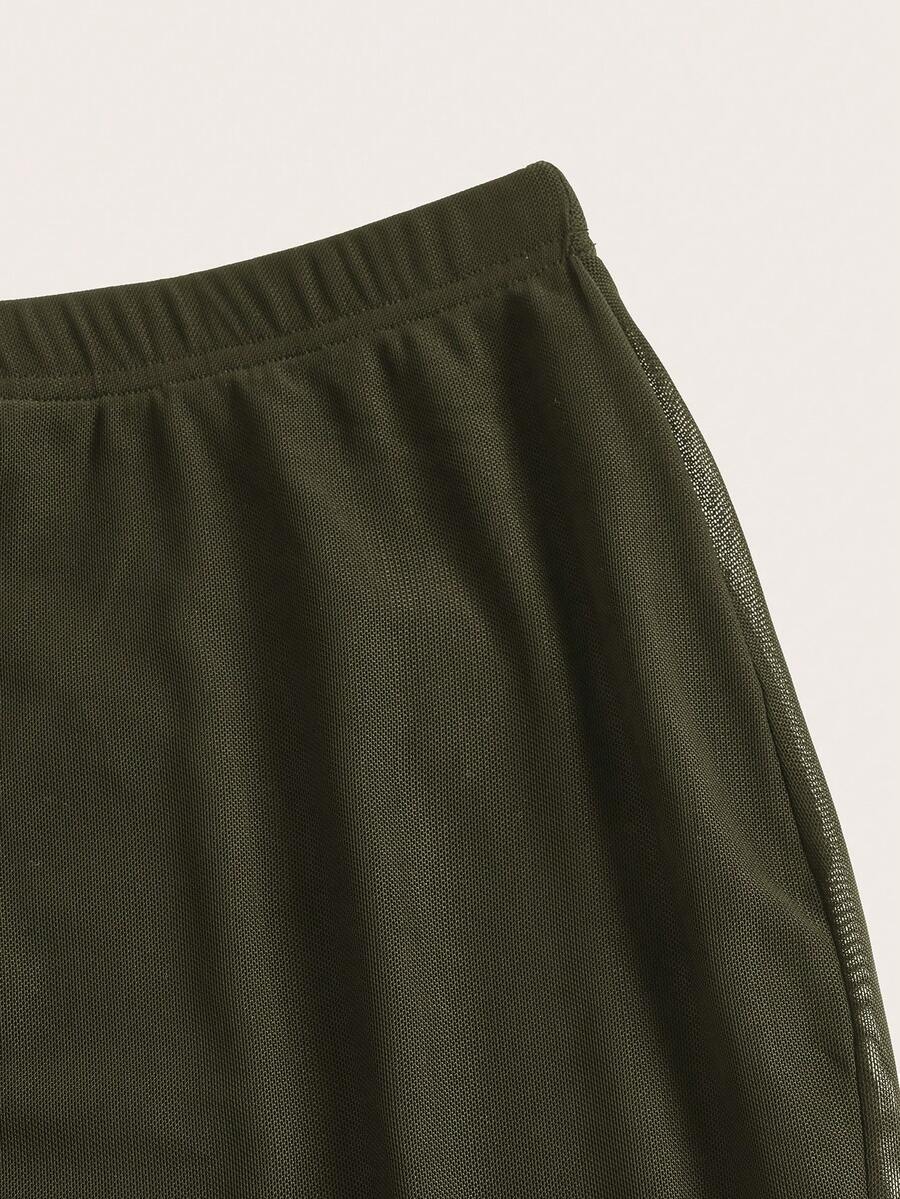 Solid Asymmetrical Hem Mesh Skirt