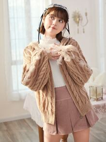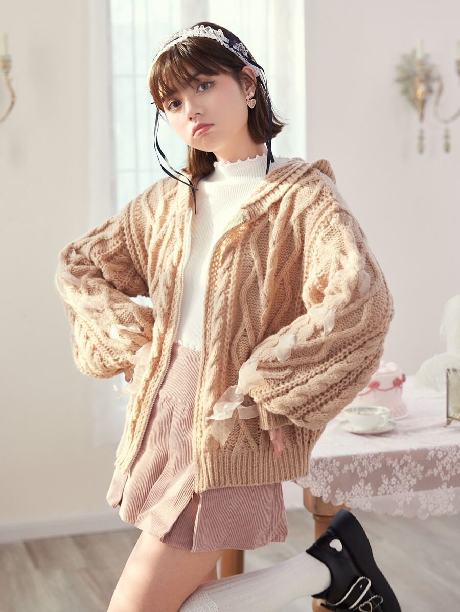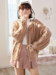 Kawaii Solid Cable Knit Zip Up Hooded Cardigan