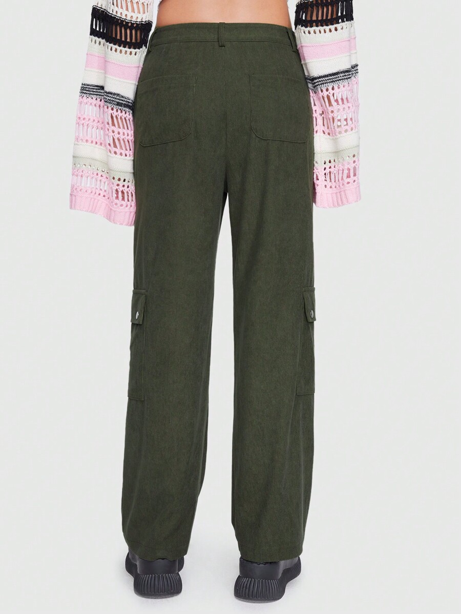 Solid Flap Pocket Side Corduroy Cargo Pants