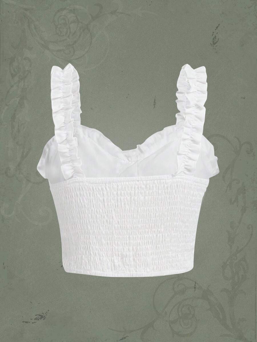 Solid Frill Trim Shirred Cami Top
