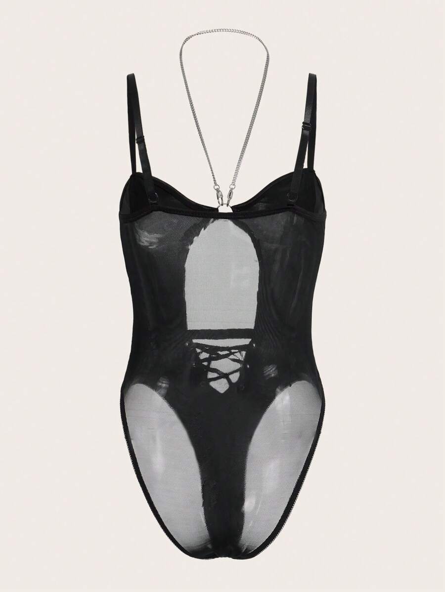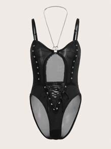 Solid Lace Up Cut Out Grommet Eyelet Teddy Bodysuit