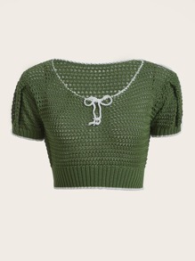 Summer Crochet Beach Holiday Solid Puff Sleeve Knit Top