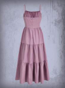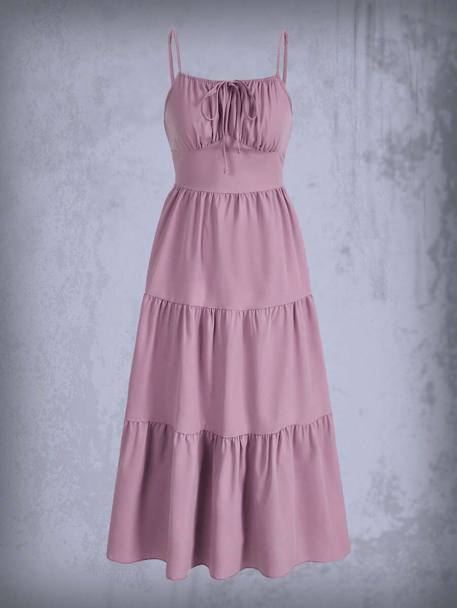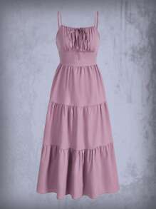 Solid Ruched Bust Ruffle Hem Cami Dress