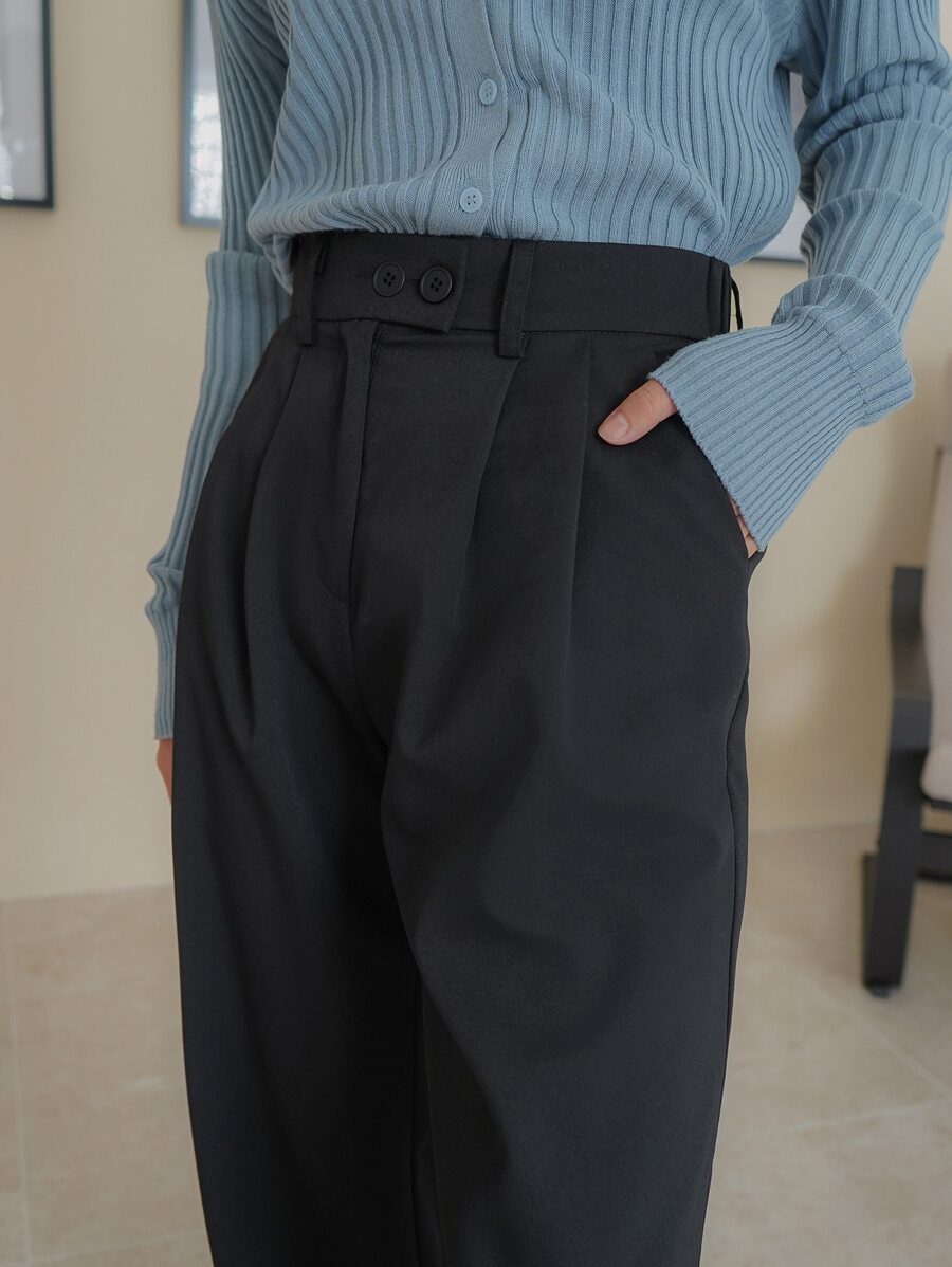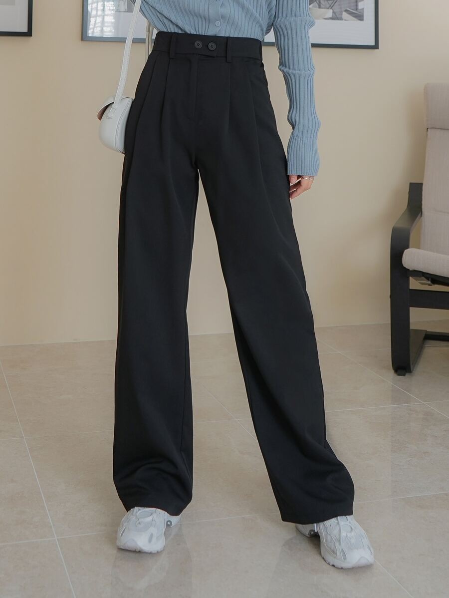 Solid Straight Leg Trousers