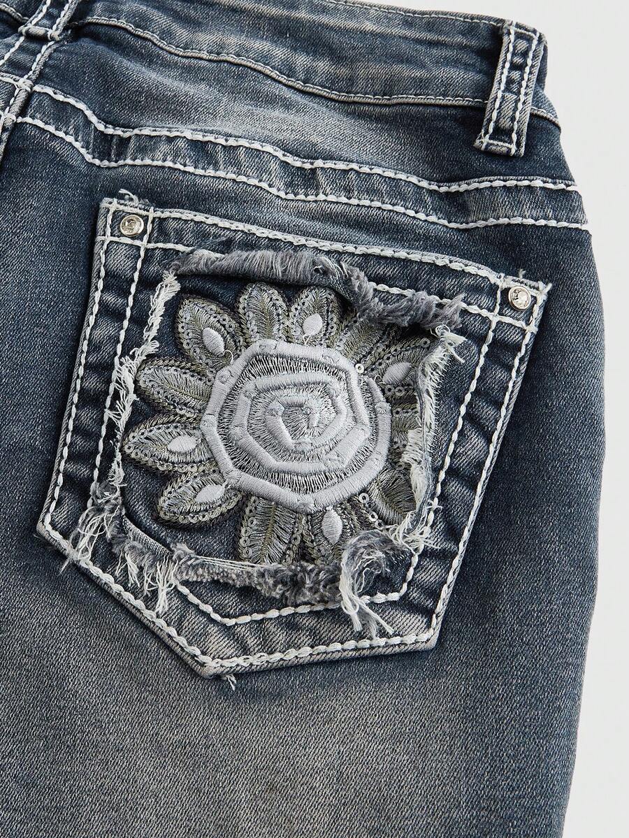 Hippie Spiral Print Pocketed Skinny Flare Leg Jeans