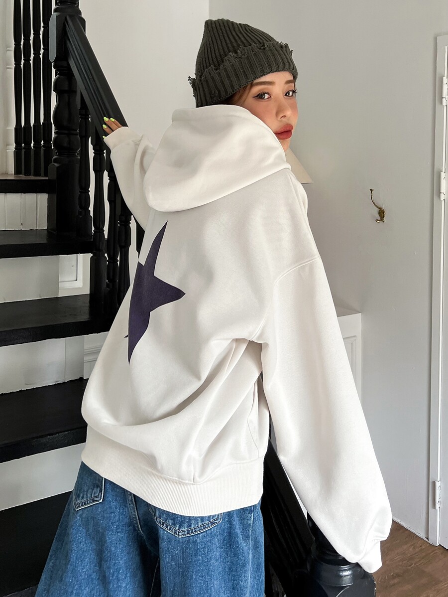 Star Print Drop Shoulder Hoodie Y2k,Long Sleeve Tops,Fall Women Clothes Sweatshirt
