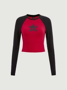 Star Print Raglan Sleeve Crop Tee