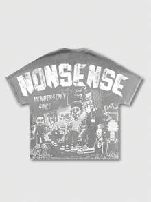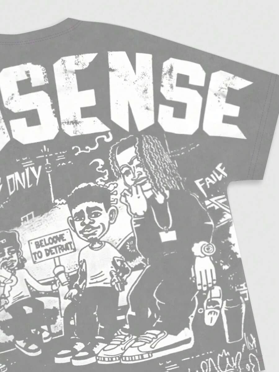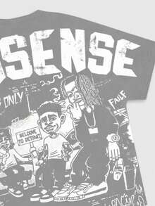 Street Life 1pc Men's Cartoon Batwing Sleeve Round Neck Short Sleeve Casual T-Shirt
