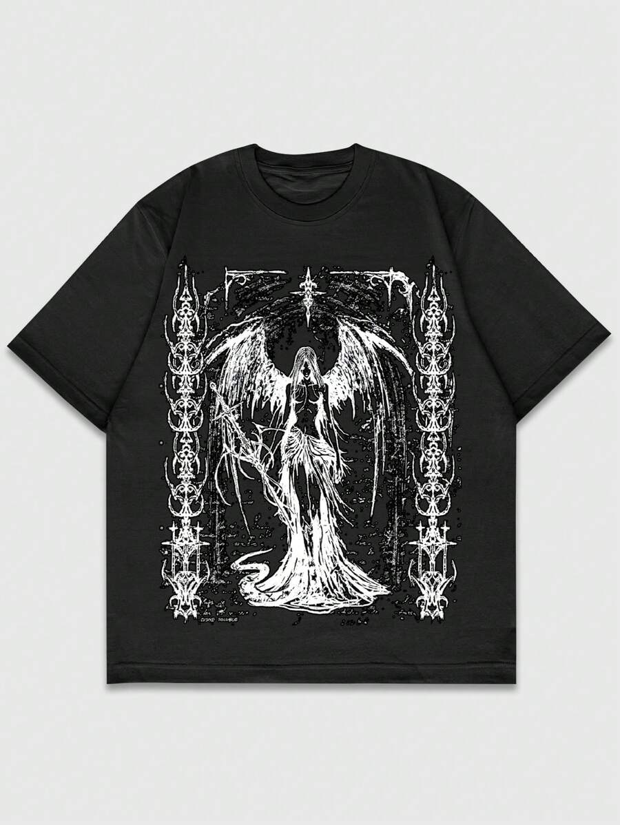 Gothic Style Casual Fashion Black T-Shirt, Dark And Gothic-Inspired Design