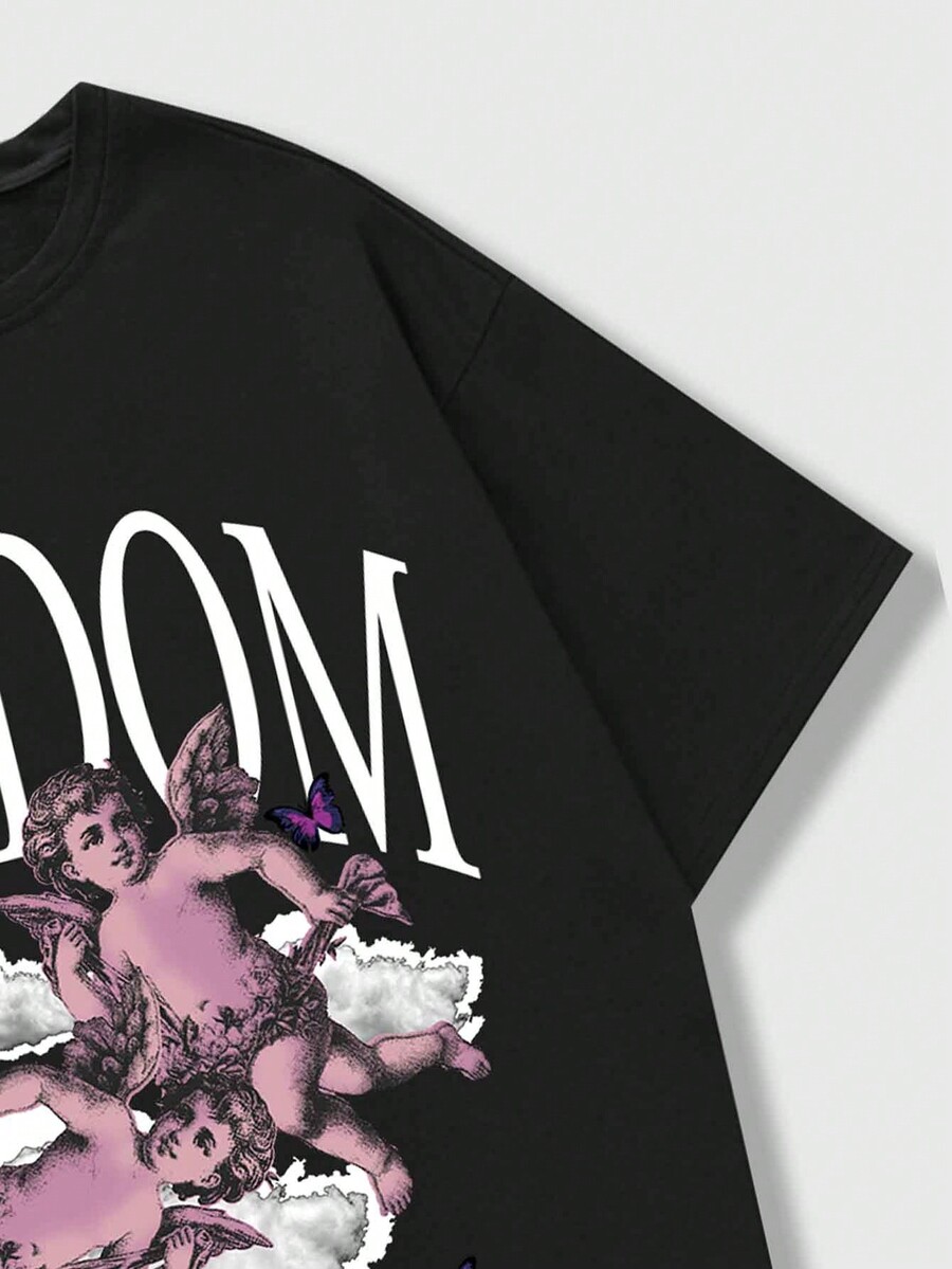 Street Life Men Angel & Letter Printed Short Sleeve T-Shirt