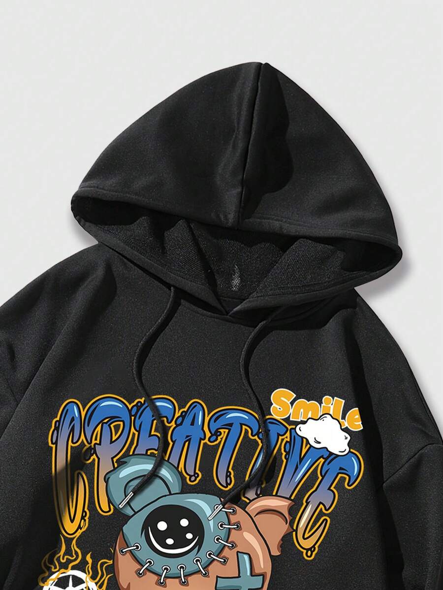 Street Life Guys Bear & Letter Graphic Drawstring Hoodie