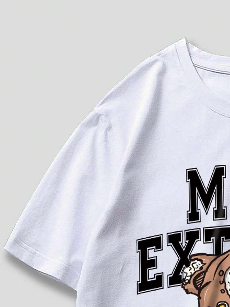 Street Life Men Bear Letter Graphic Tee & Striped Trim Drawstring Shorts, School