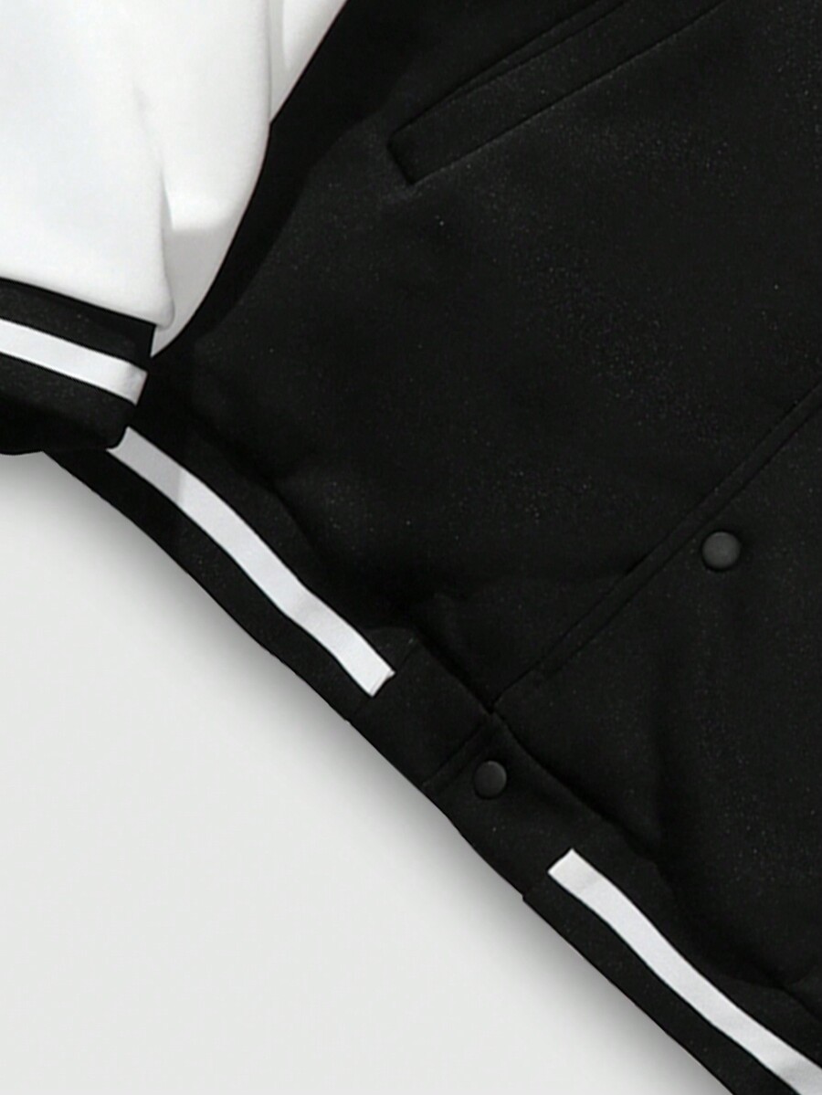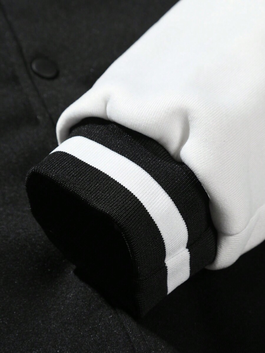 Street Life Men Butterfly Letter Graphic Striped Trim Drop Shoulder Varsity Jacket
