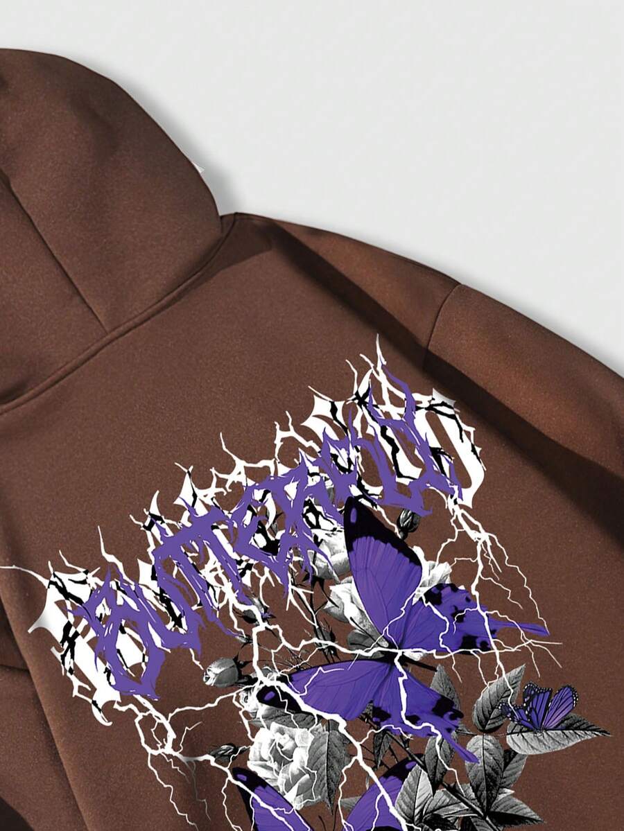 Street Life Guys Butterfly & Slogan Graphic Drawstring Thermal Lined Hoodie