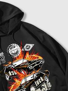 Street Life Guys Car & Letter Graphic Drawstring Hoodie