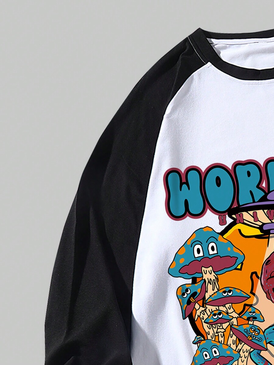 Street Life Men Cartoon & Letter Graphic Raglan Sleeve Tee