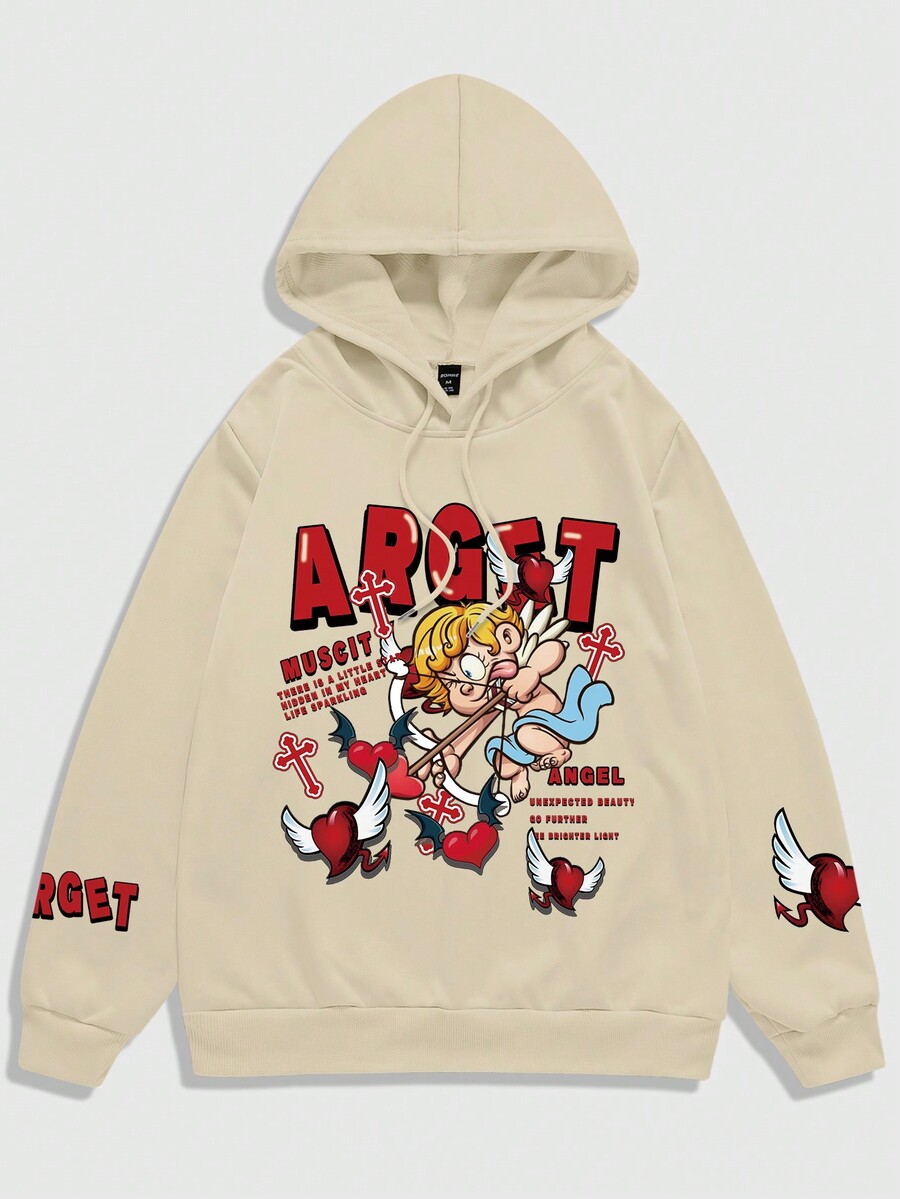 Street Life Men Cartoon Printed Hooded Long-Sleeved Sweatshirt
