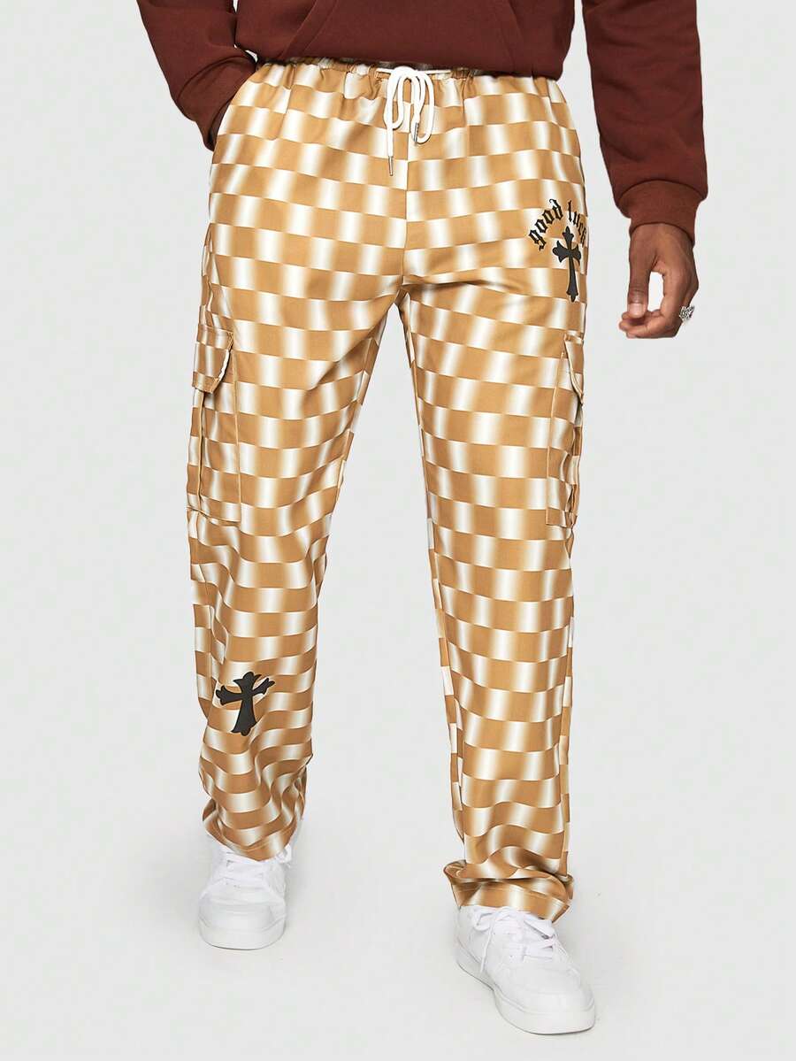 Street Life Guys Checkerboard Print Drawstring Waist Cargo Pants