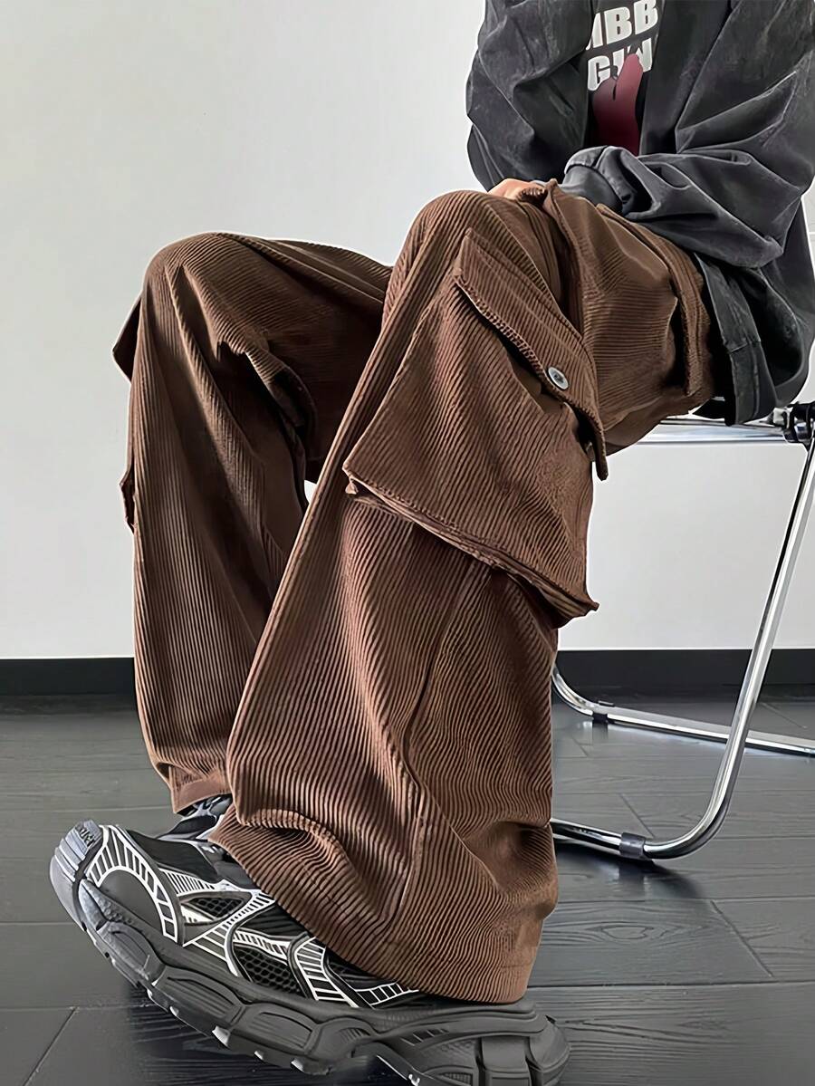 Street Life Men Corduroy Solid Color Cargo Trousers