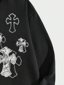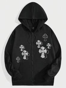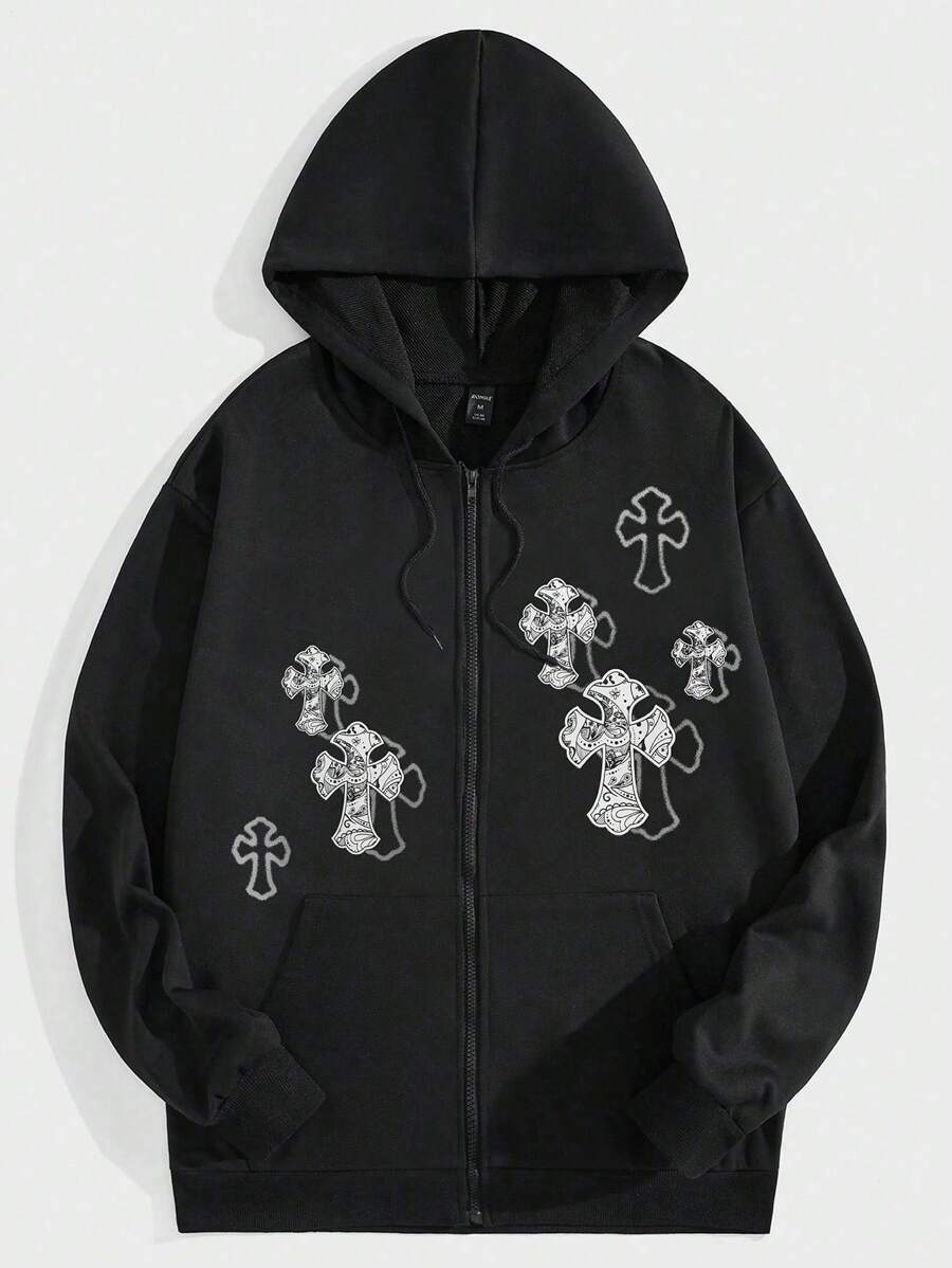 Street Life Guys Cross Print Zip Up Drawstring Thermal Lined Hoodie