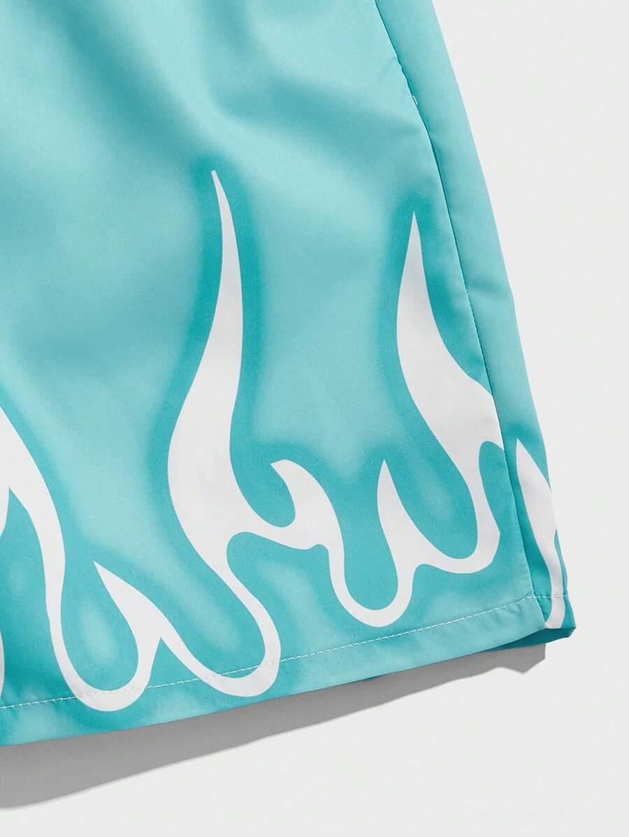 Street Life Men Fire & Letter Graphic Drawstring Waist Shorts