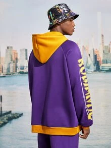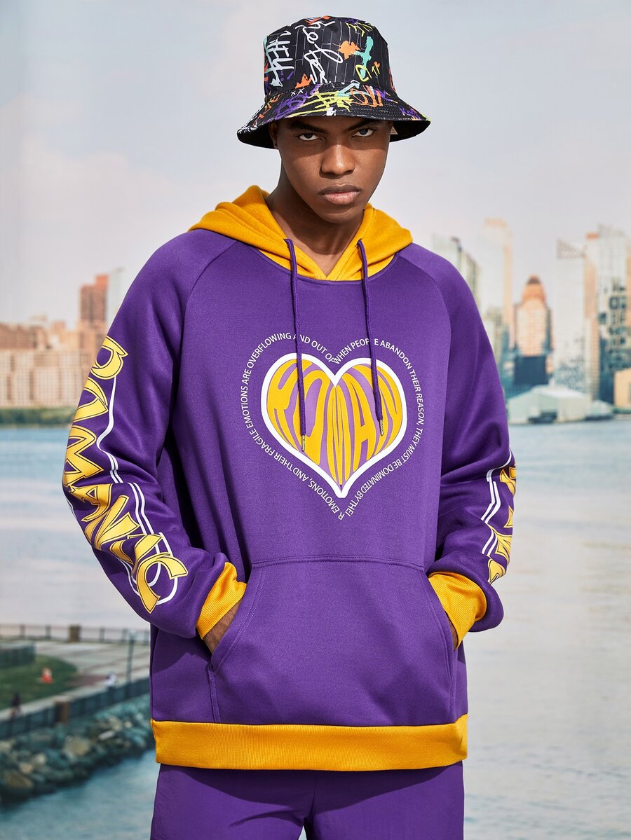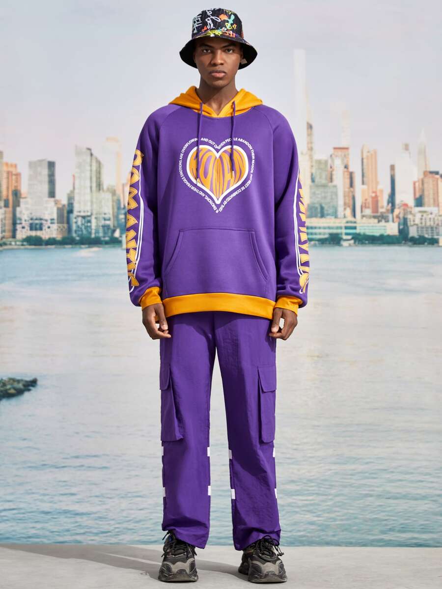 Guys Heart & Letter Graphic Drawstring Thermal Hoodie
