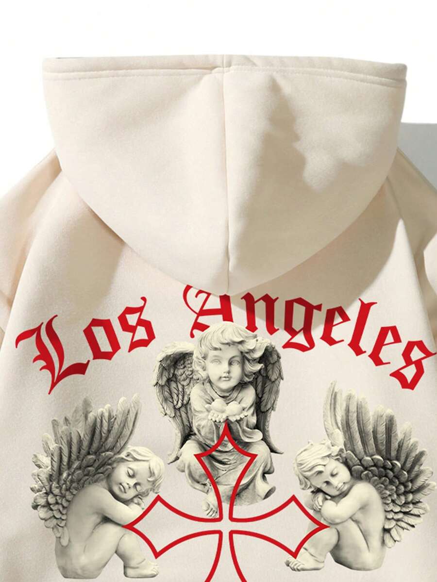 Street Life Guys Letter & Angel Pattern Sweatshirt