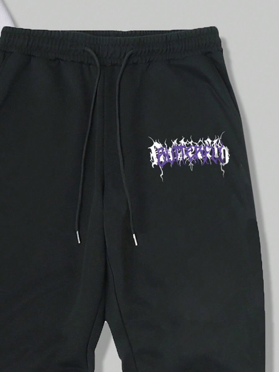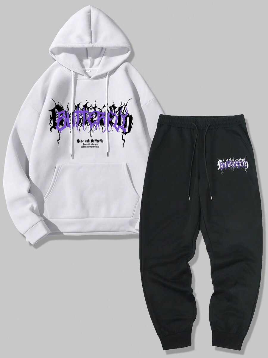 Street Life Men Letter & Butterfly Graphic Drawstring Hoodie & Sweatpants