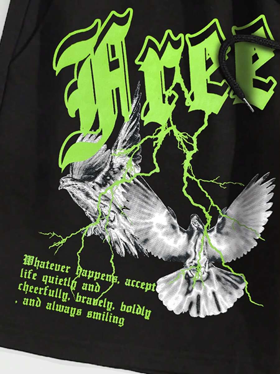 Street Life Men Letter Graphic Drawstring Waist Shorts