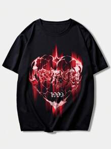 Street Life Men Letter & Heart Printed Short Sleeve T-Shirt