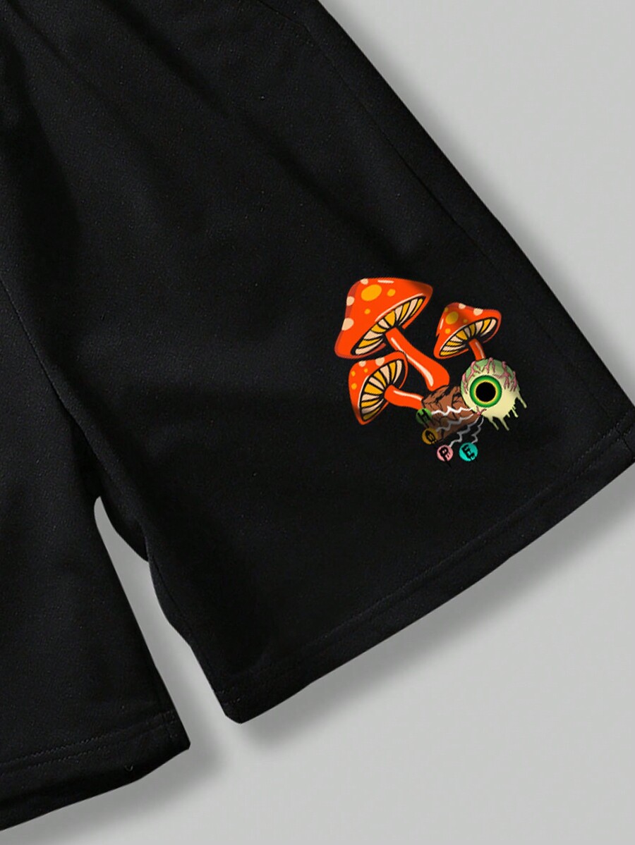 Street Life Men Mushroom & Slogan Print T-Shirt And Shorts Set, School
