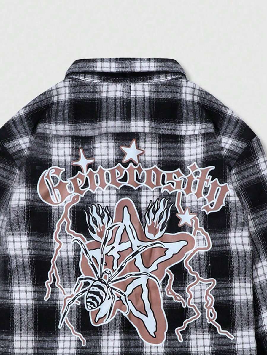 Street Life Men Plaid Print Star & Slogan Graphic Shirt