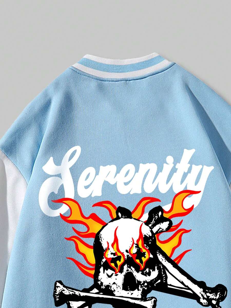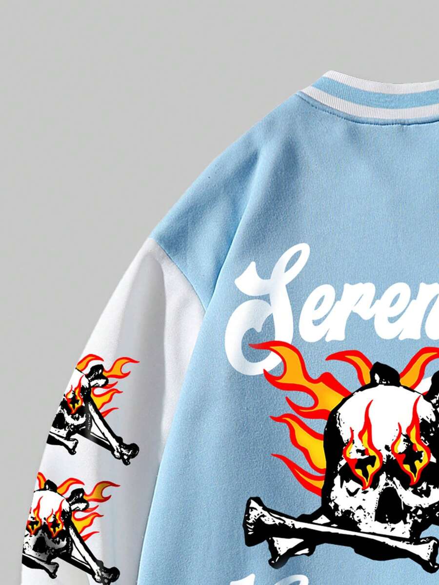 Street Life Guys Skull Graphic Two Tone Varsity Jacket
