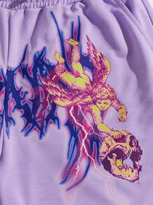 Street Life Guys Skull Print Drawstring Waist Shorts