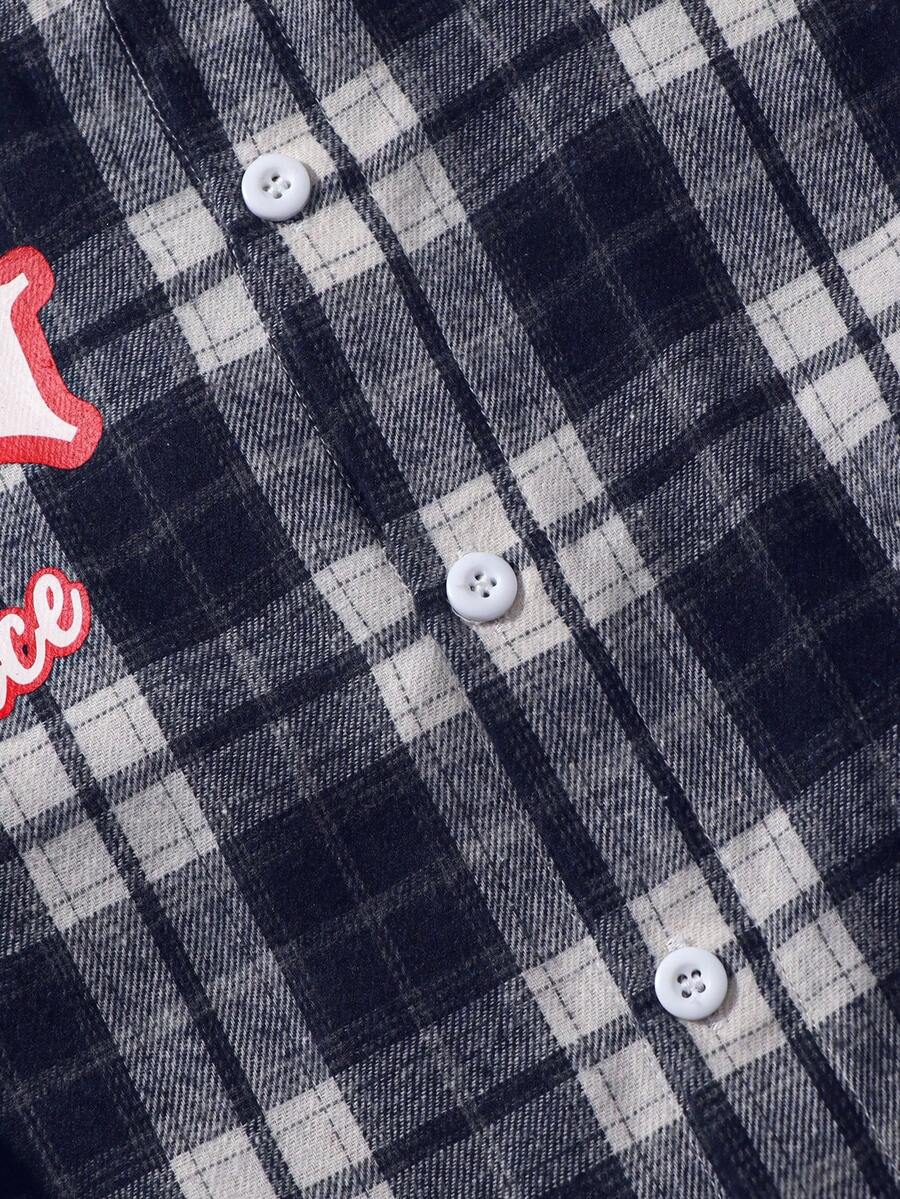 Street Life Men Slogan And Plaid Print 2 In 1 Long Sleeve Shirt