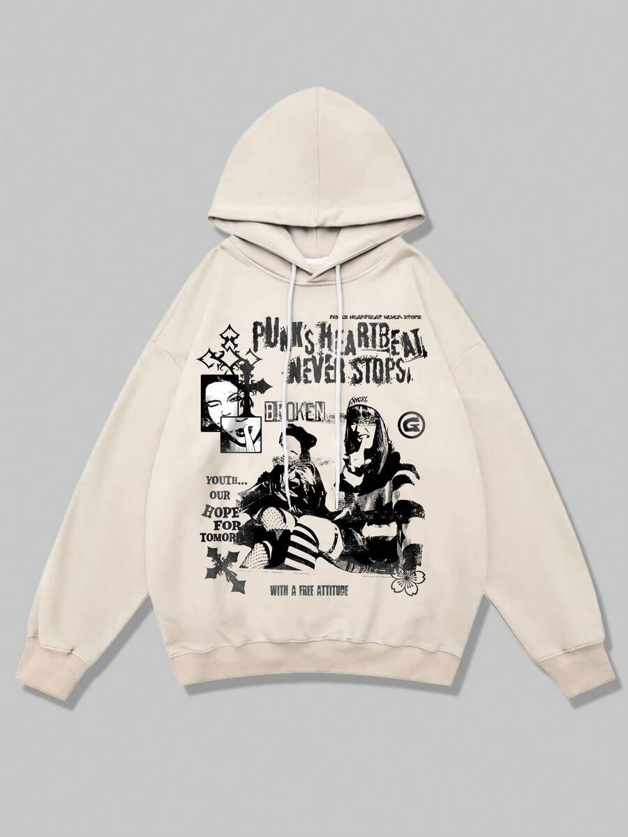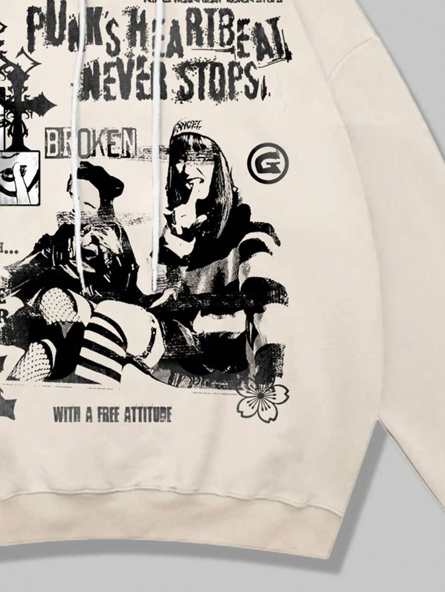 Street Life Guys Slogan & Figure Graphic Drawstring Thermal Lined Hoodie
