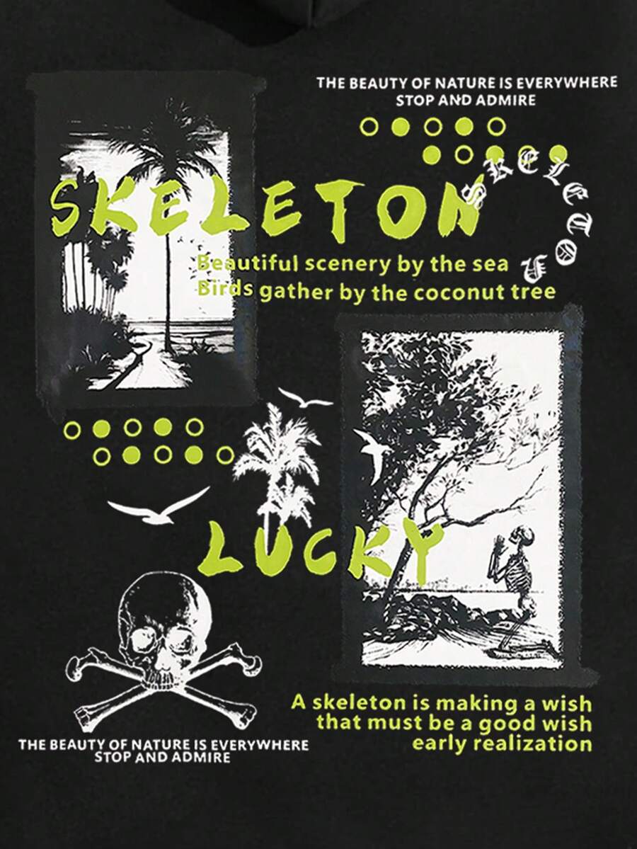 Street Life Guys Slogan Graphic Drawstring Hoodie