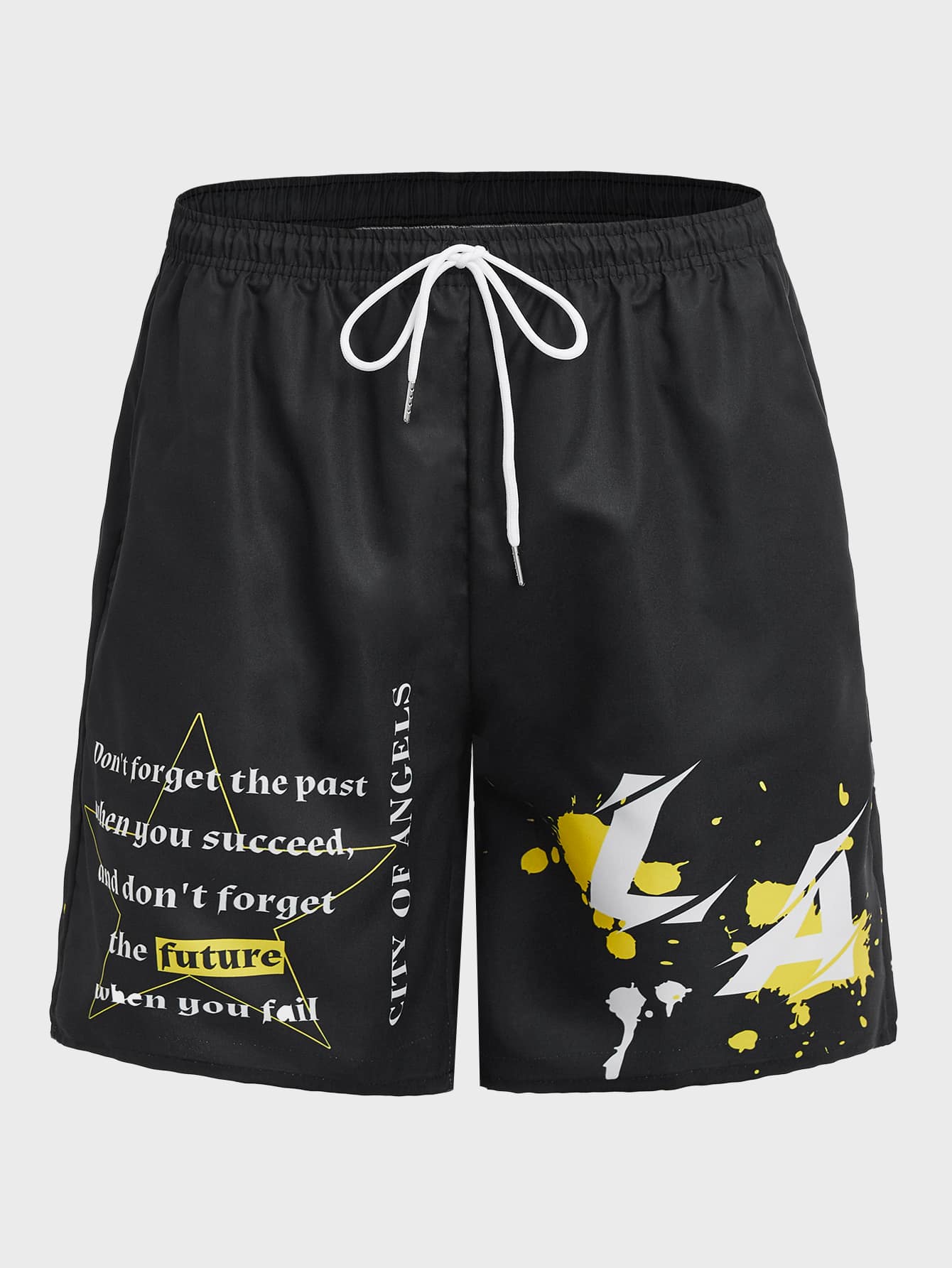 Street Life Guys Slogan Graphic Drawstring Waist Shorts