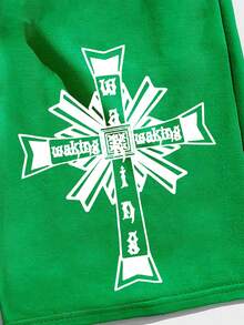 Street Life Guys Slogan Graphic Drawstring Waist Shorts