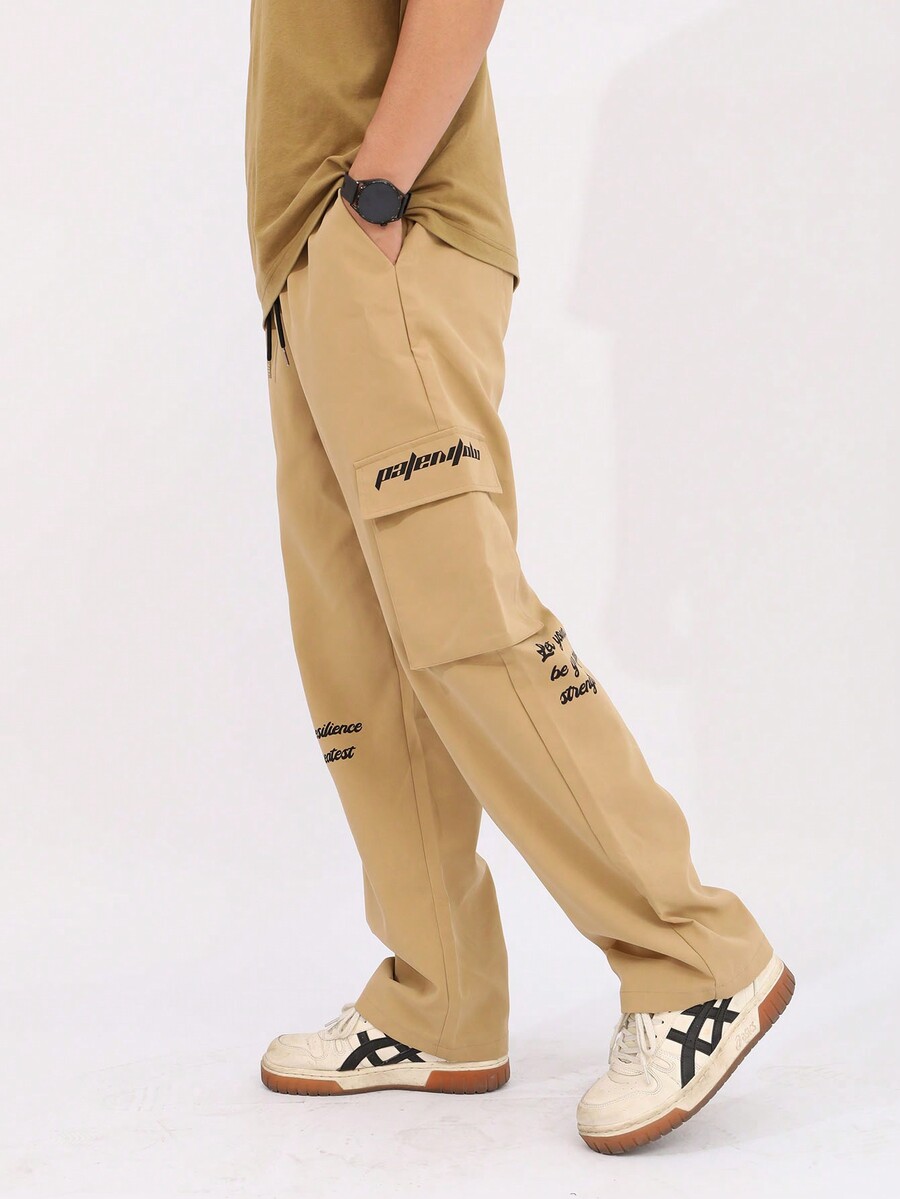 Street Life Guys Slogan Graphic Flap Pocket Side Drawstring Waist Cargo Pants