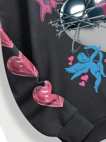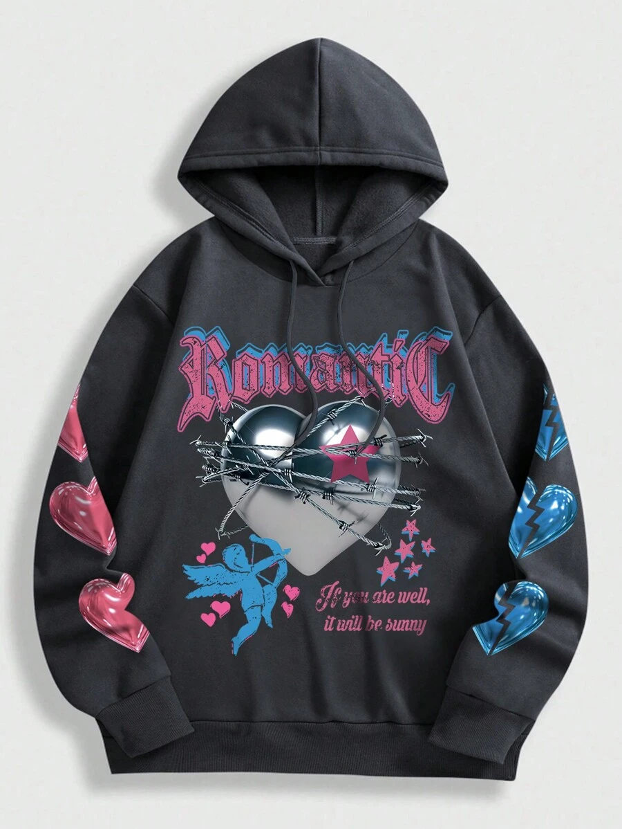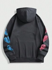 Street Life Men Slogan & Heart Printed Hooded Sweatshirt With Drawstring