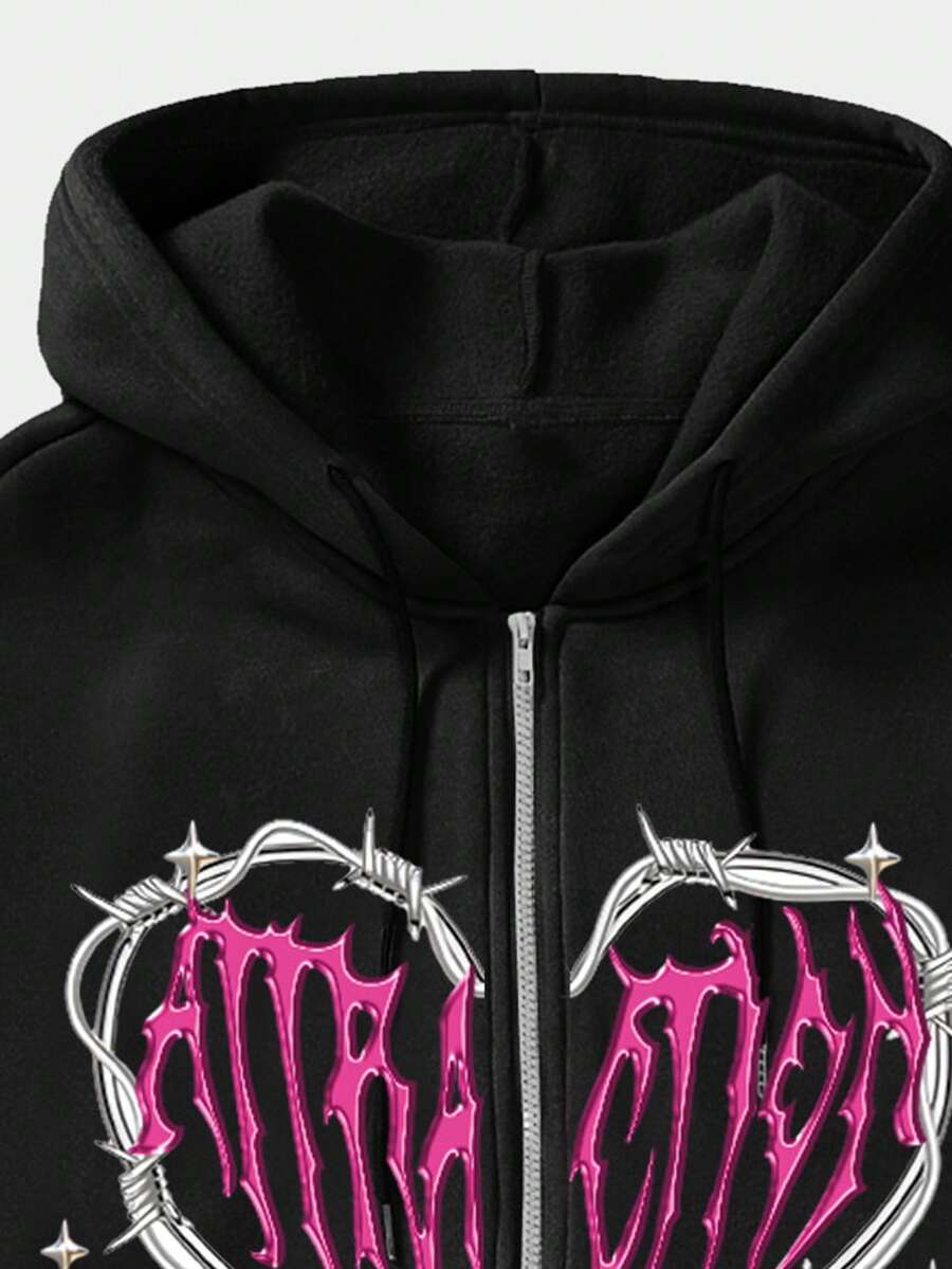 Street Life Men Star & Letter Graphic Zip Up Drawstring Hoodie