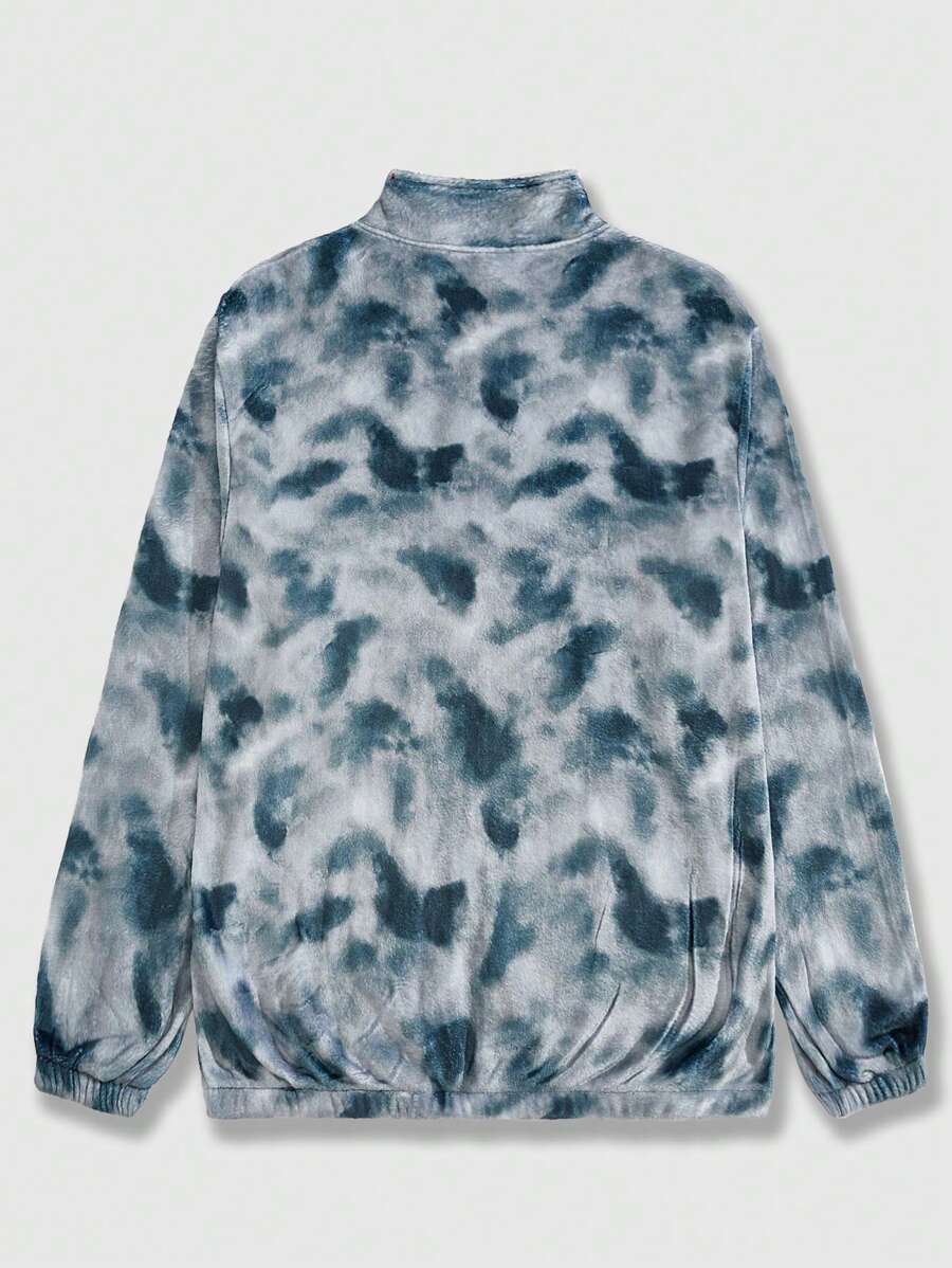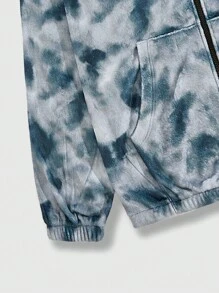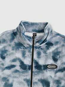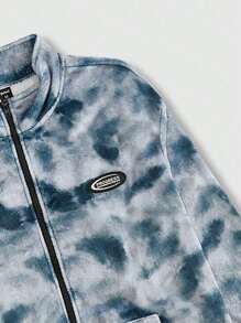 Street Life Guys Tie Dye Letter Patched Detail Drop Shoulder Zipper Jacket