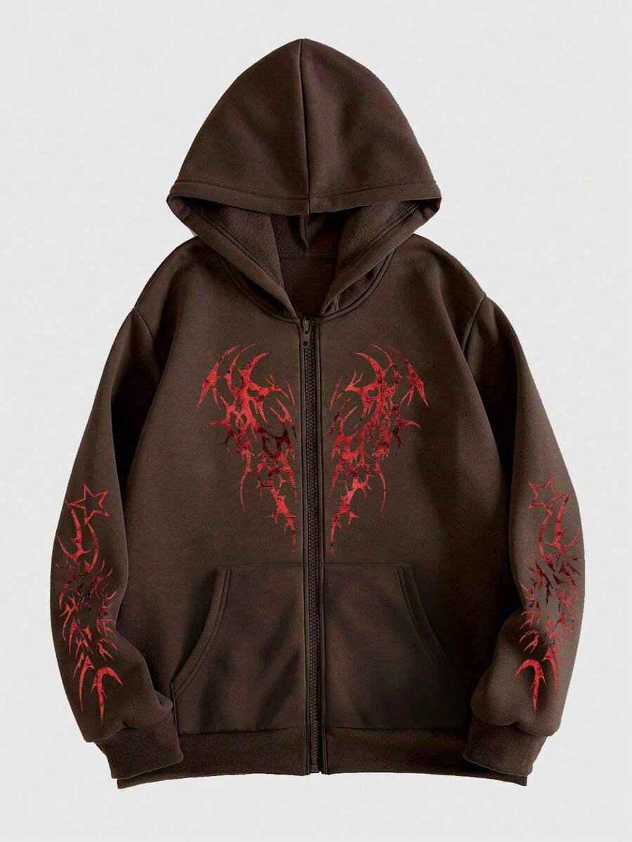 Street Life Guys Wings Print Zip Up Thermal Lined Hoodie