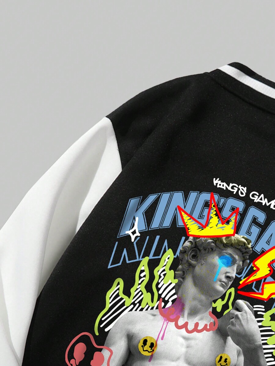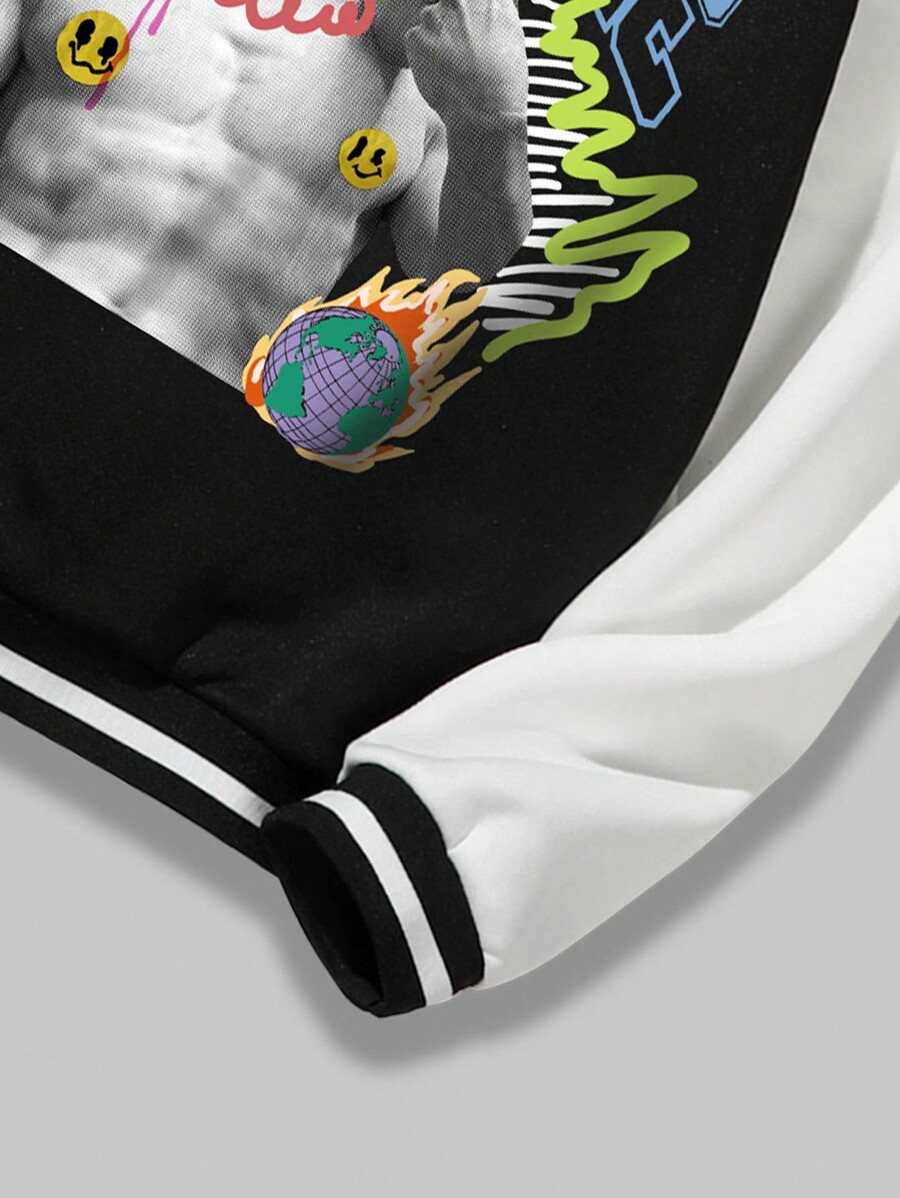 Street Life Men Cartoon Character Smile Printed Baseball Jacket
