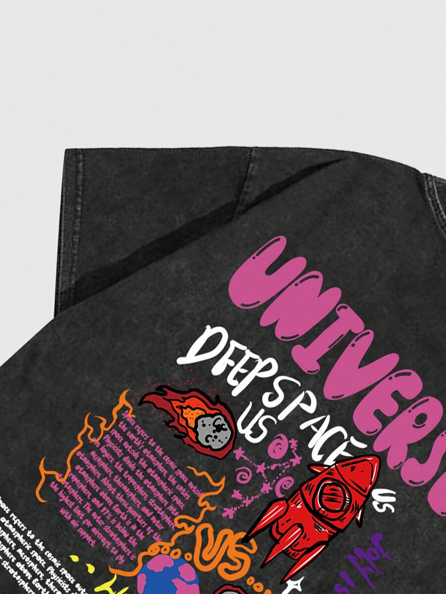 Street Life Men Colorful Graffiti Print And Dyed Letter T-Shirt, School
