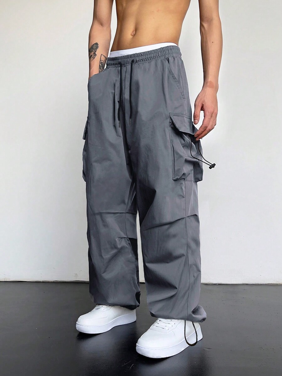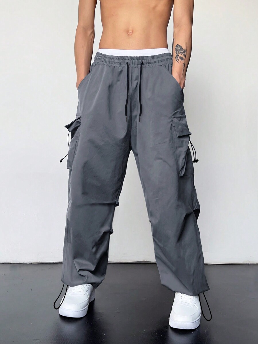 Street Life Men Flap Pocket Side Drawstring Waist Cargo Pants