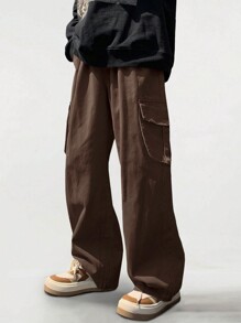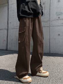 Street Life Men Khaki Wide Leg Casual Pants With Pocket Decorations